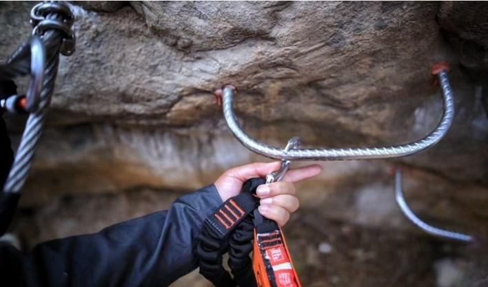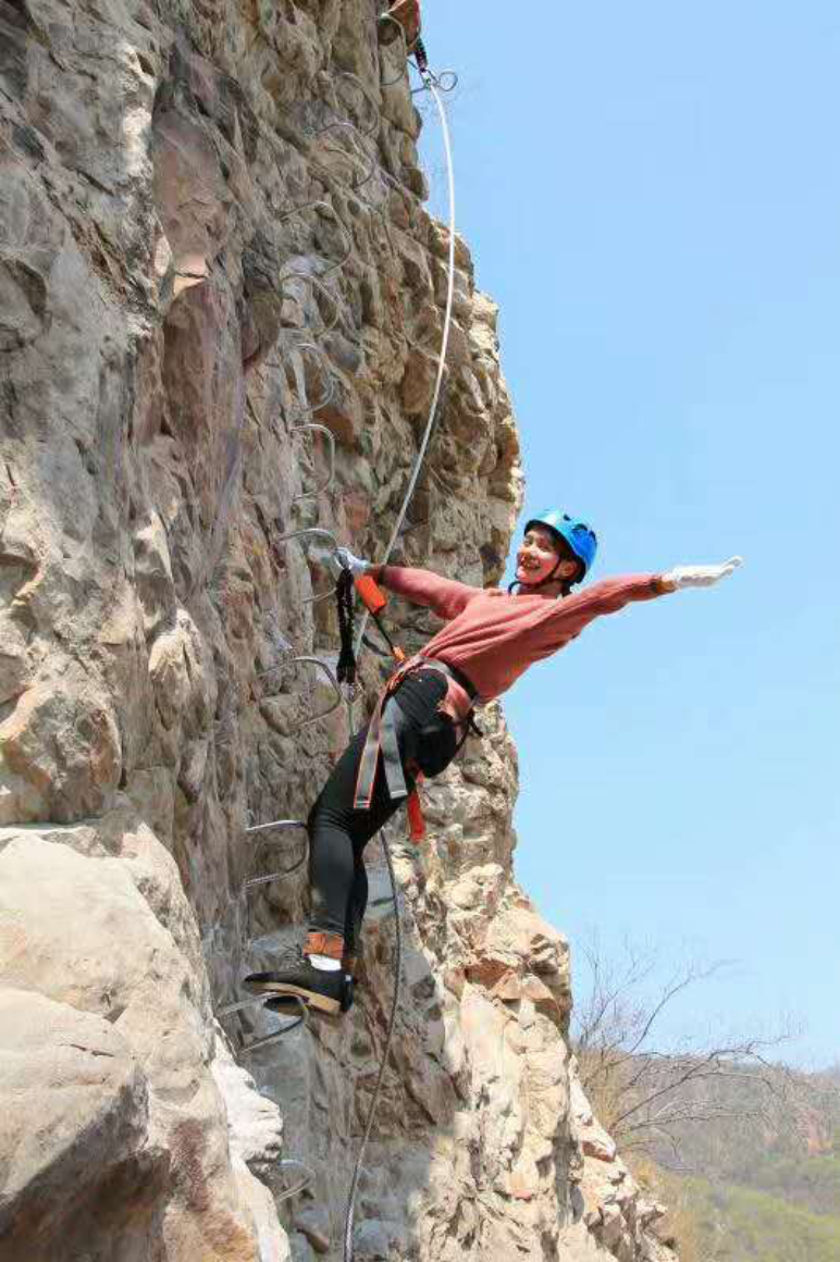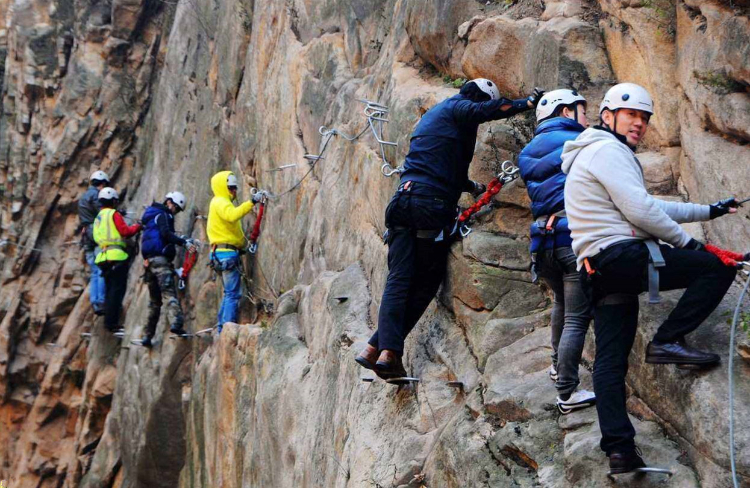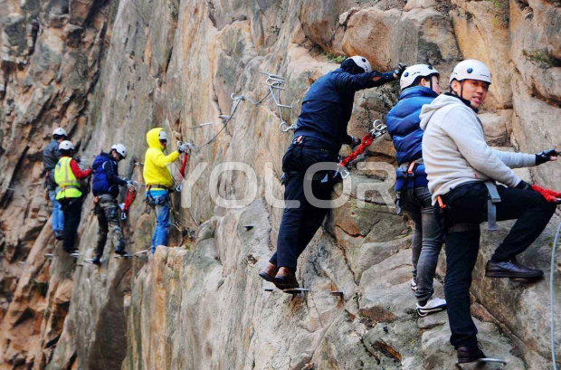飛拉達(dá),是在山體巖壁上建設(shè),由鋼扶手、腳踏、生命鋼纜等構(gòu)成的攀登徑道,通過(guò)安全可靠的裝備,不僅保留了野外攀巖的驚險(xiǎn)刺激,達(dá)到鍛煉體能和意志的目的,同時(shí)大大降低了對(duì)攀爬者的專業(yè)技術(shù)要求,在保障安全的前提下,讓不具備攀巖能力的人也能攀上陡峭的巖壁,享受征服大山的快感。